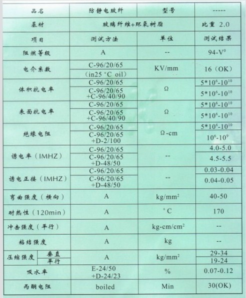 简述防静电FR-4性能参数表